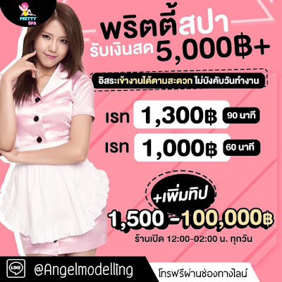 พริตตี้สปา รับสมัครสาวสวยว่างงาน  จ่ายเงินสดให้ทุกวัน รายได้วันล่ะ 5,000  บาทขึ้น